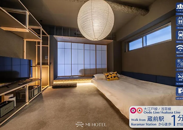 There is Ishiwara-Itchome bus stop right near the 3-star Mi-Kan Design Hotel and Kuramae metro station is about a 5-minute stroll away.
